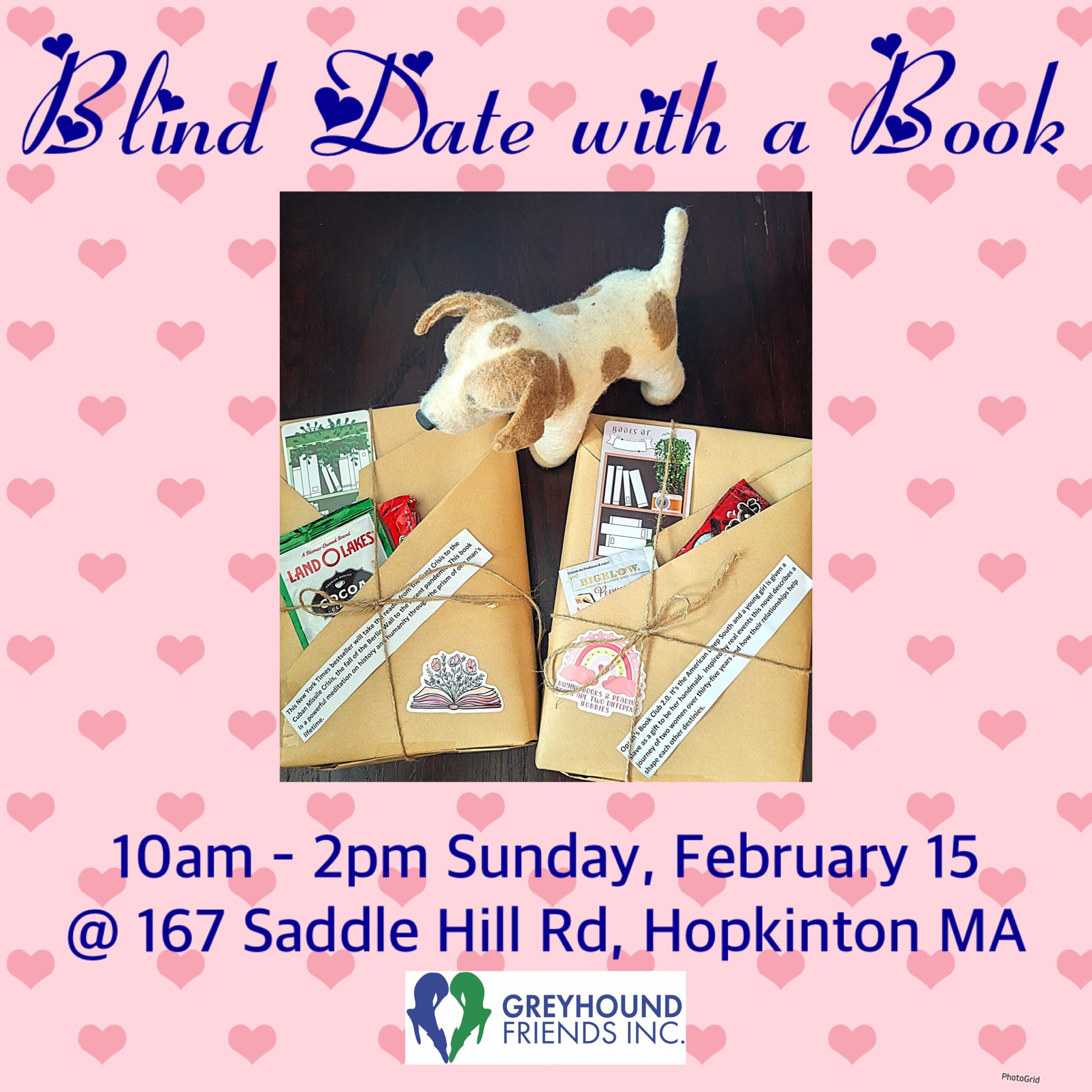 Come visit the Greyhound Friends shelter, buy a wrapped book knowing only a few sentences about the content, then savor the surprise when you unwrap and enjoy it with a nice hot drink on a chilly day. ![]()